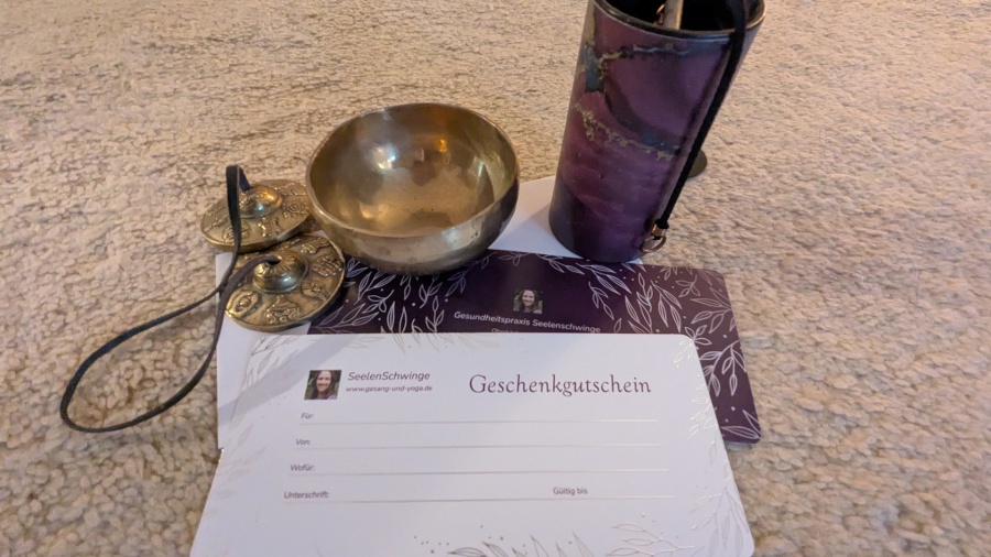 Z.B. mit einem Gutschein für Gesangsunterricht, Yogastunde oder Beratung mit all den Themen, die Du hier auf meiner Website siehst.